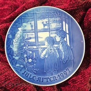 TWO Vintage Blue and White Danish Royal Copenhagen Porcelain Christmas Collector Plates 1975 1976 |