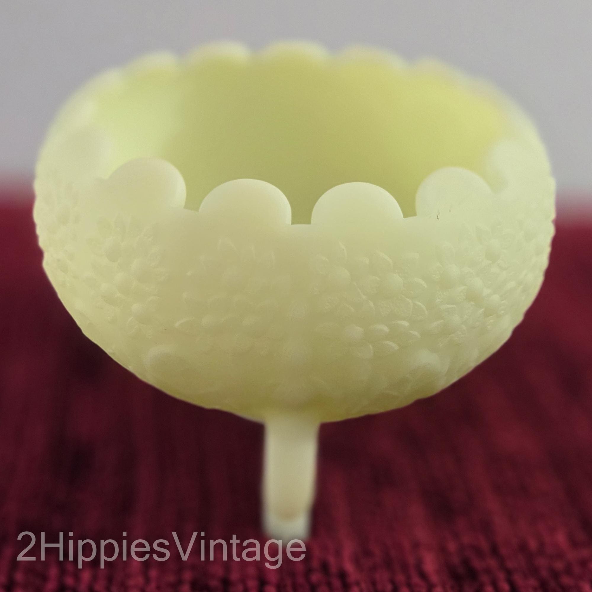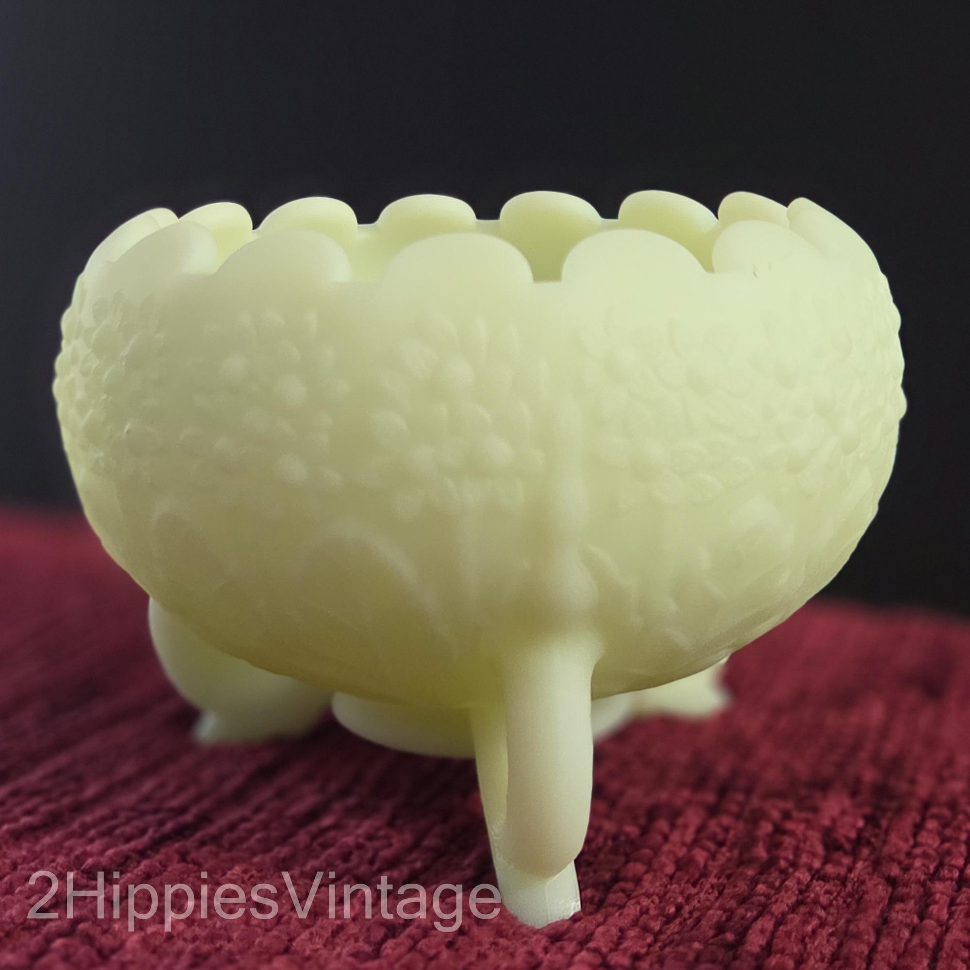 Vintage Fenton Daisy Custard / Satin / Uranium UV Glass Three Footed Candy Bowl |
