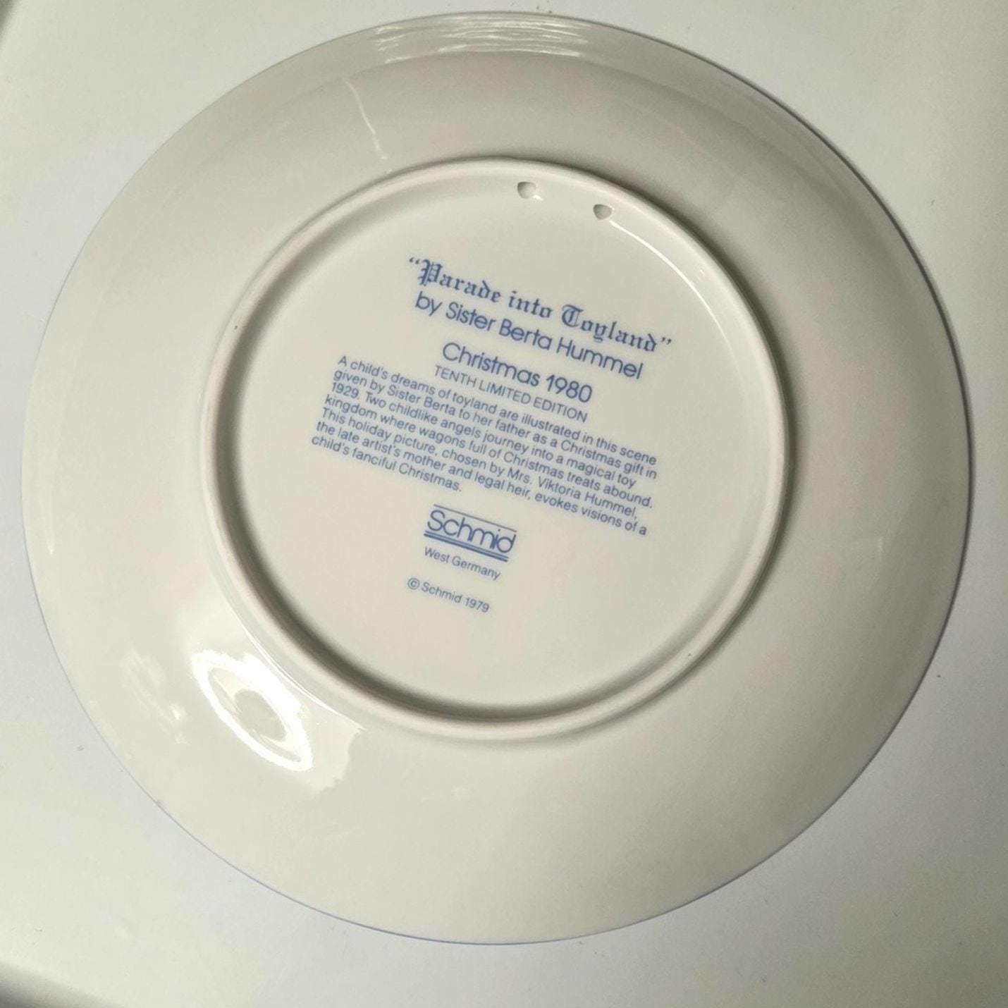 Schmid & Company was a prominent American company that held the exclusive license to produce Hummel figurines and plates in the United States for many years. They were known for their high-quality reproductions and annual collector editions, often featuring seasonal themes like Christmas. This plate is a representative example of their collectible series, celebrating the artistry of Berta Hummel.