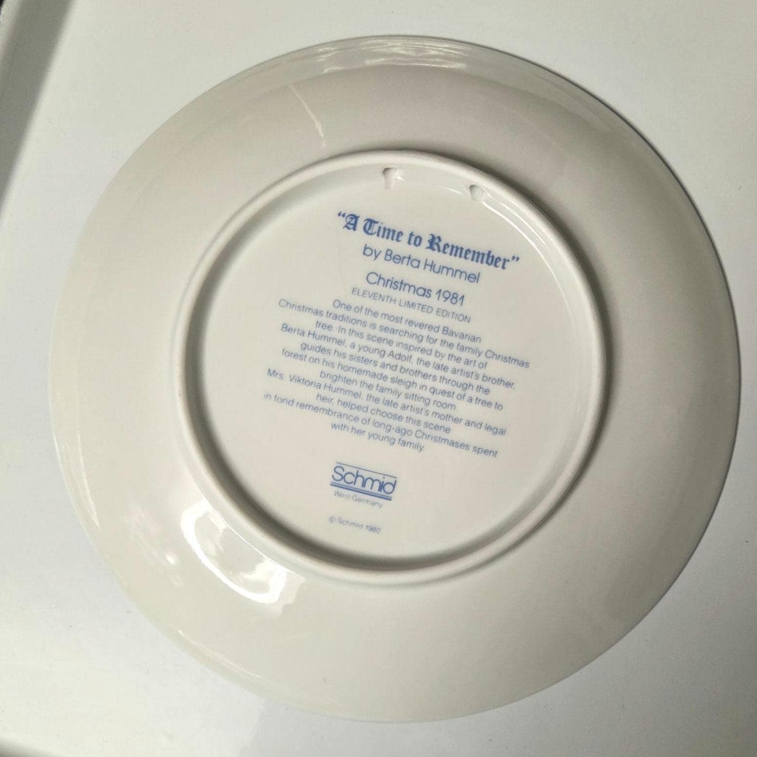 A Time to Remember by Berta Hummel Christmas 1981 Collector Plate