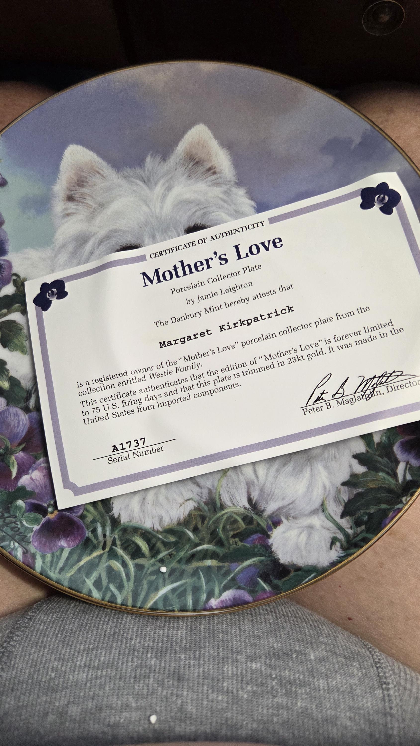 Danbury Mint West Highland Terrier Collector Plate – Mother's Love Beloved Westies Series, A1737 |