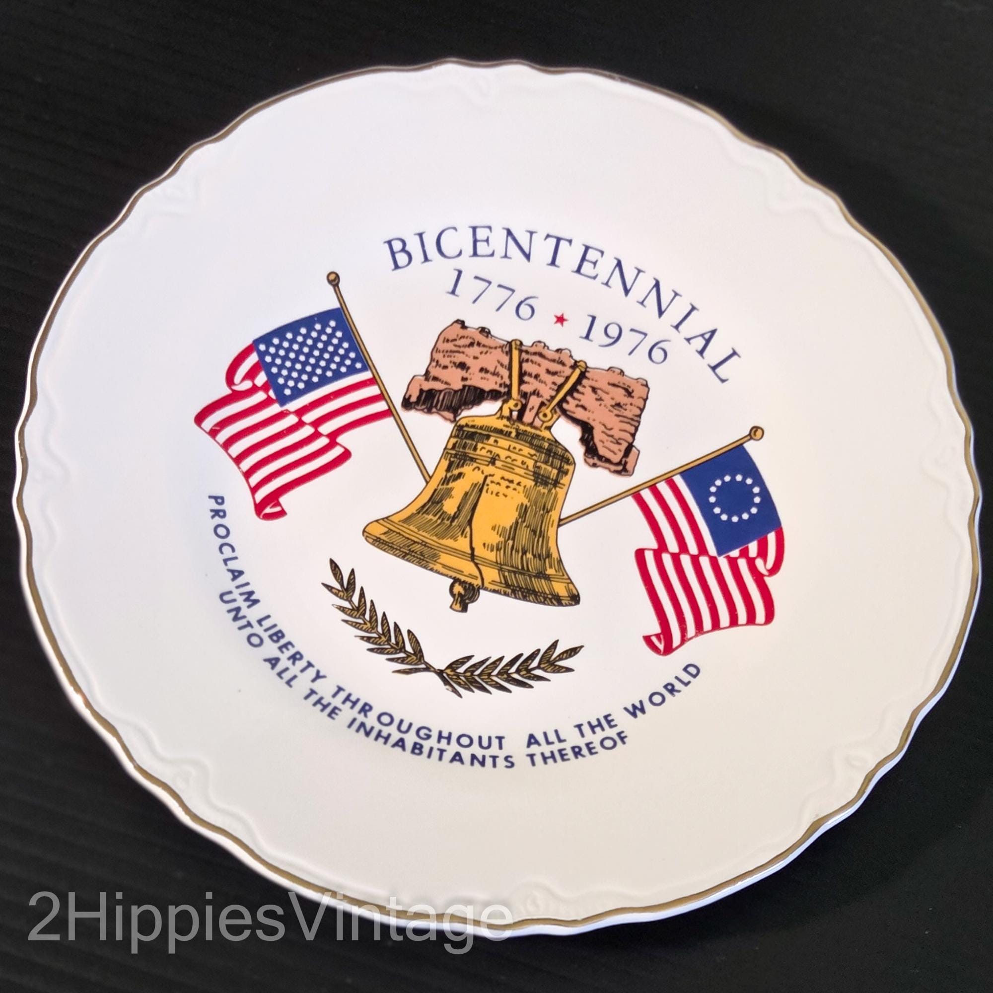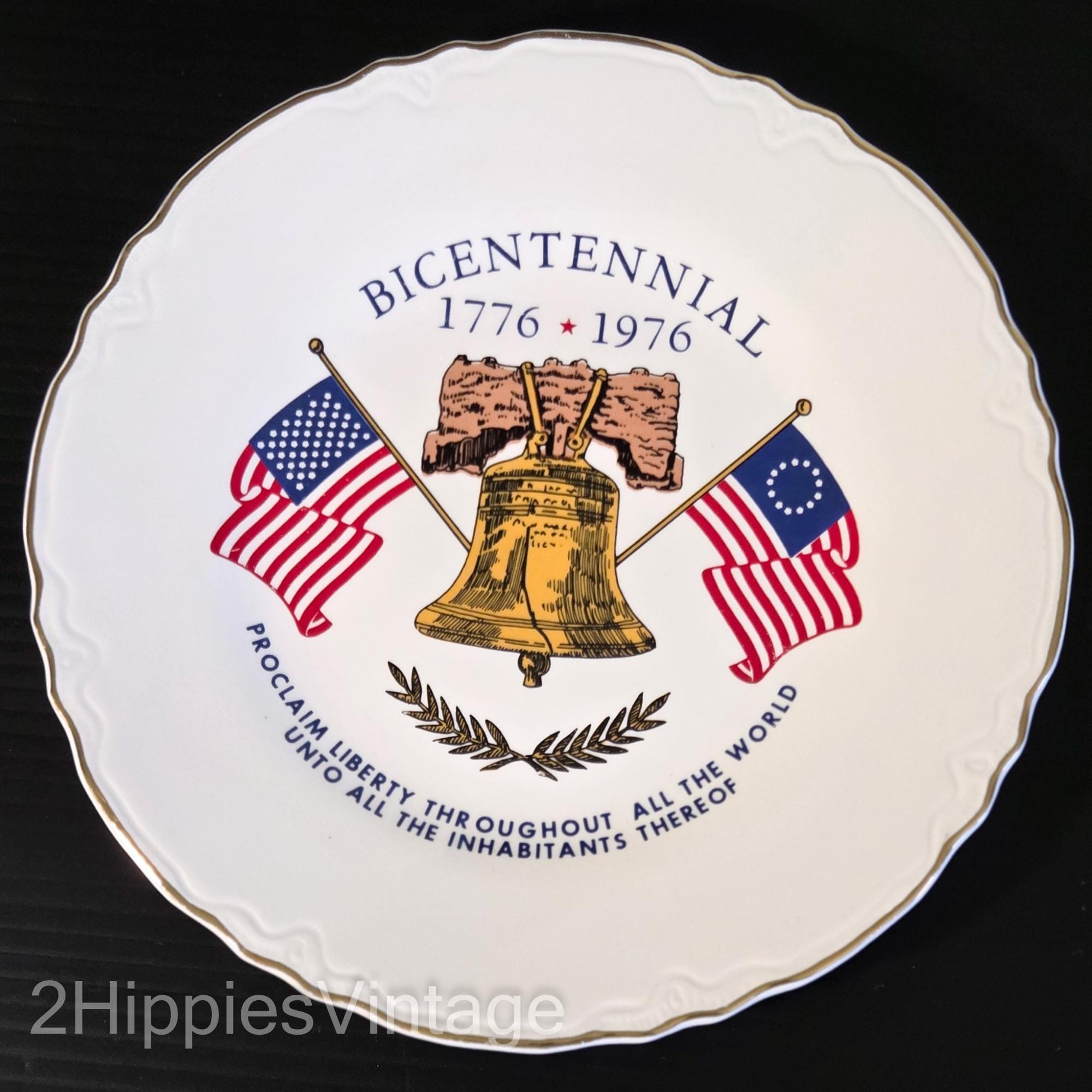 1976 Bicentennial Plate, USA, Preston-Hodkinson Co, Appomattox, VA, Ironstone Display Plate, Excellent VTG Condition, Liberty Bell w First and Present Flags.