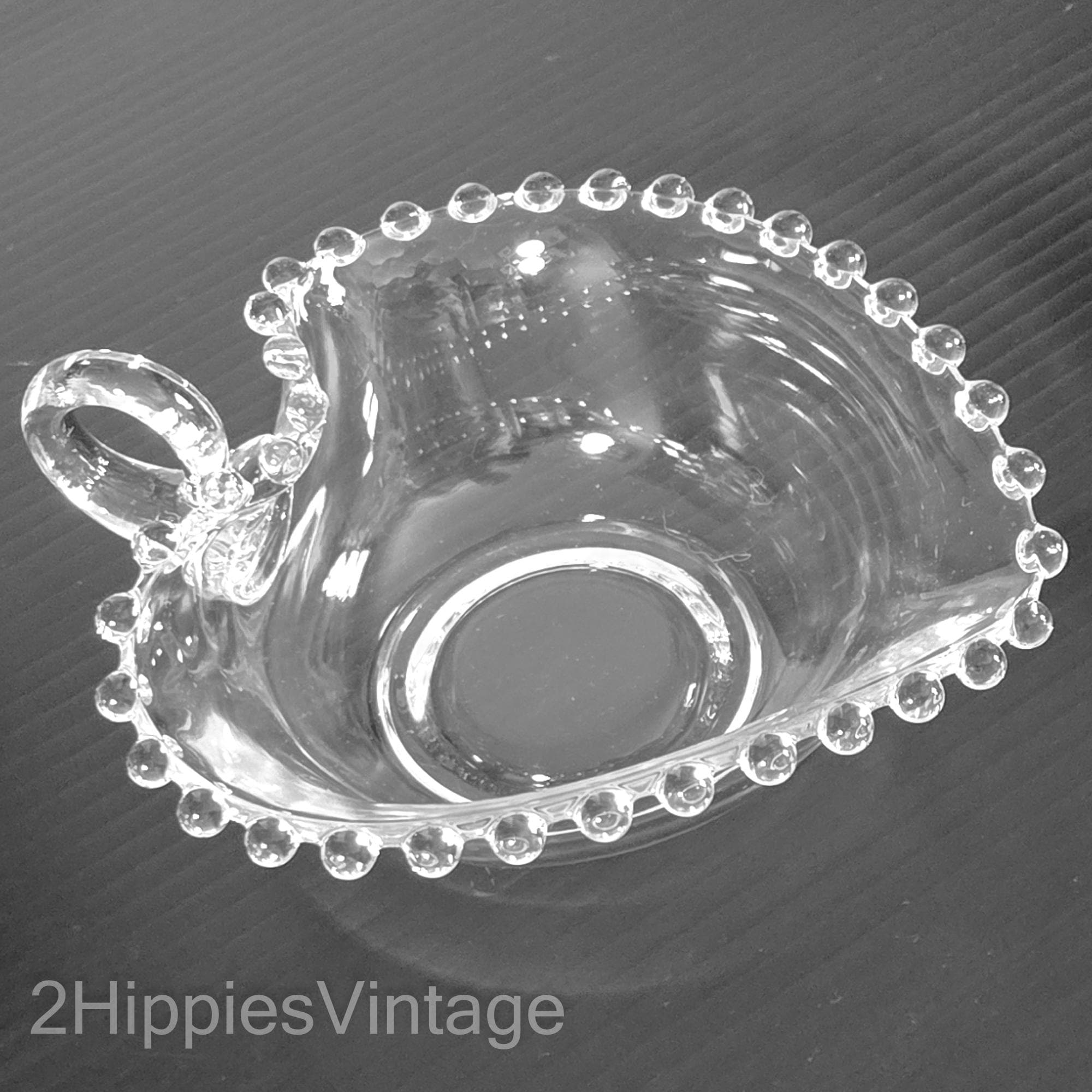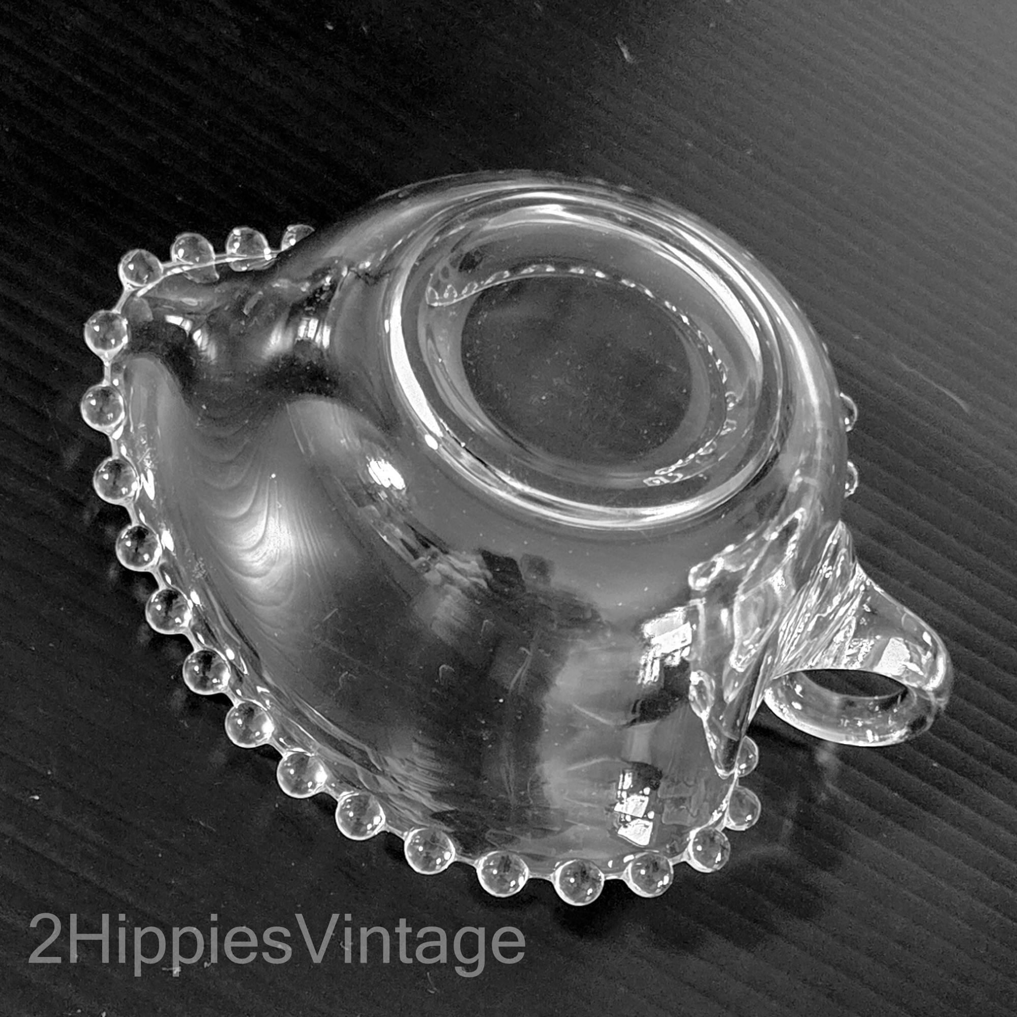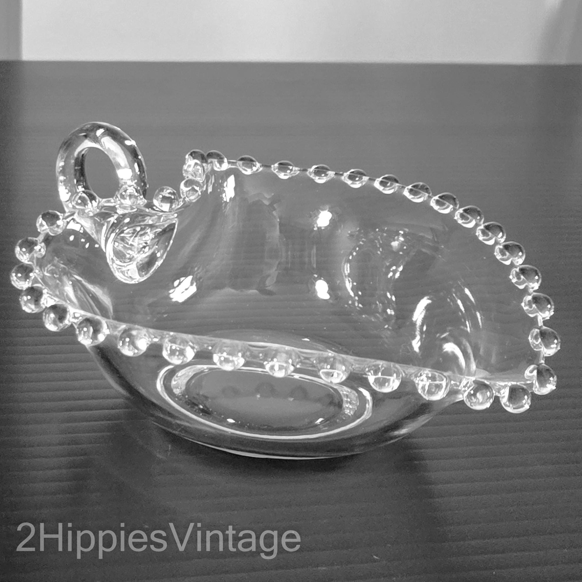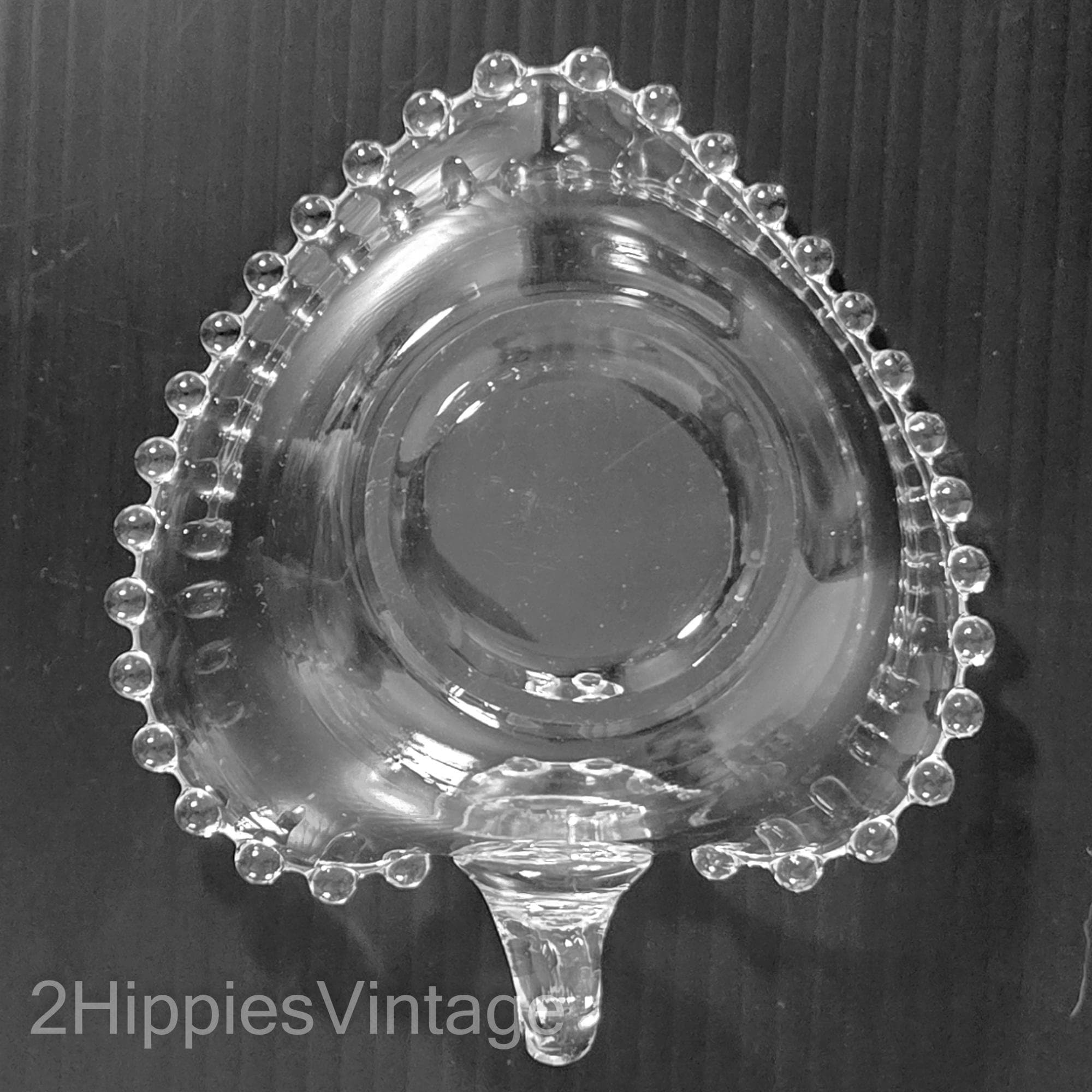 Vintage Imperial Candlewick Clear (Stem 3400) by IMPERIAL GLASS-OHIO Heart Shaped Beaded Glass Trinket Dish with Handle