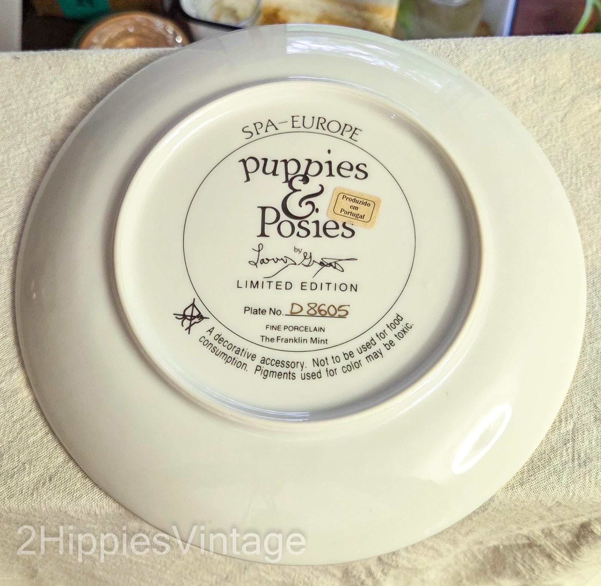 Vintage Franklin Mint Collector Plate "Puppies and Posies" by artist Larry Grant | No Box