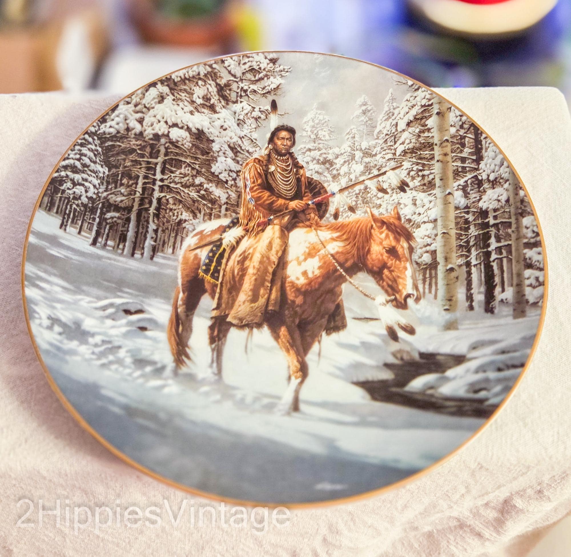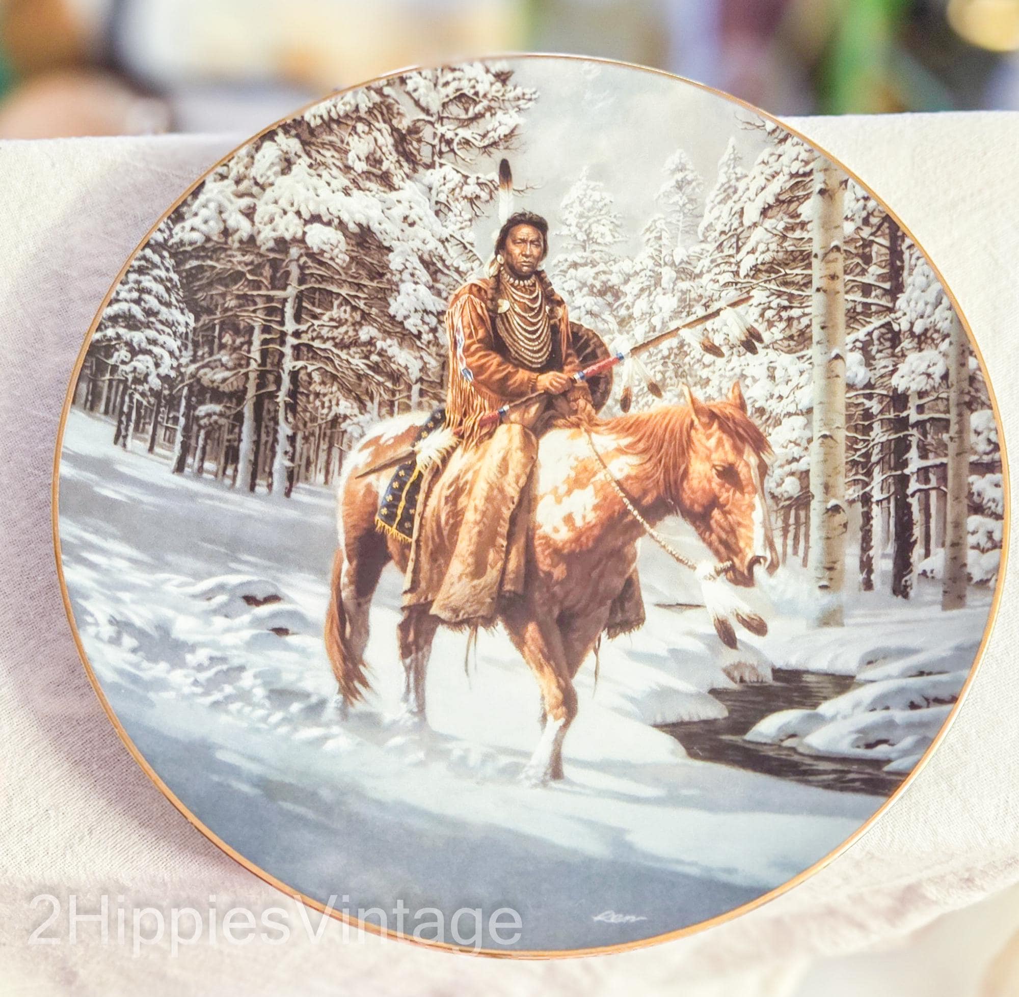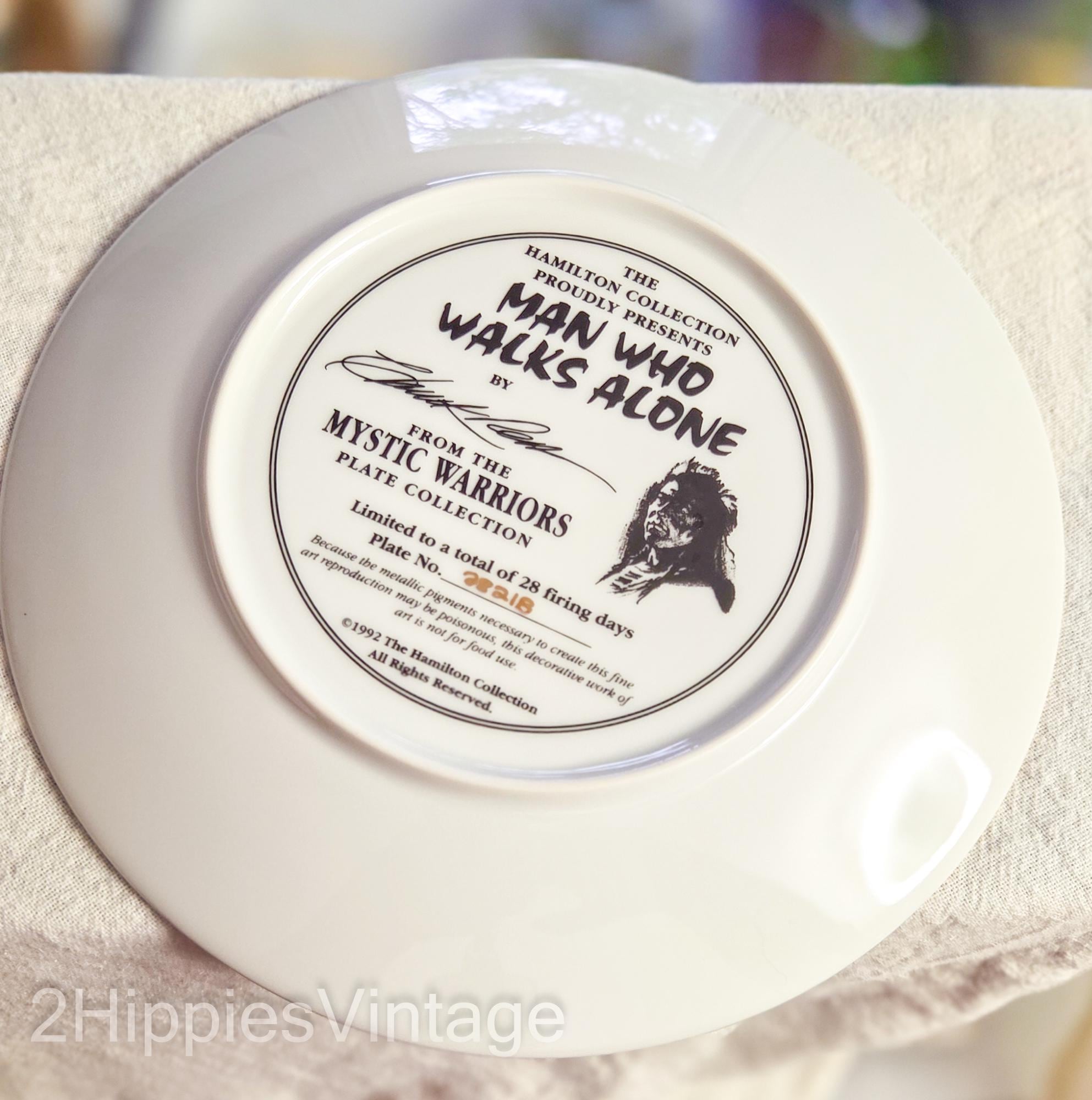 1992 Hamilton Collection "Man Who Walks Alone" limited edition collector plate by artist Chuck Ren from the Mystic Warriors series.
